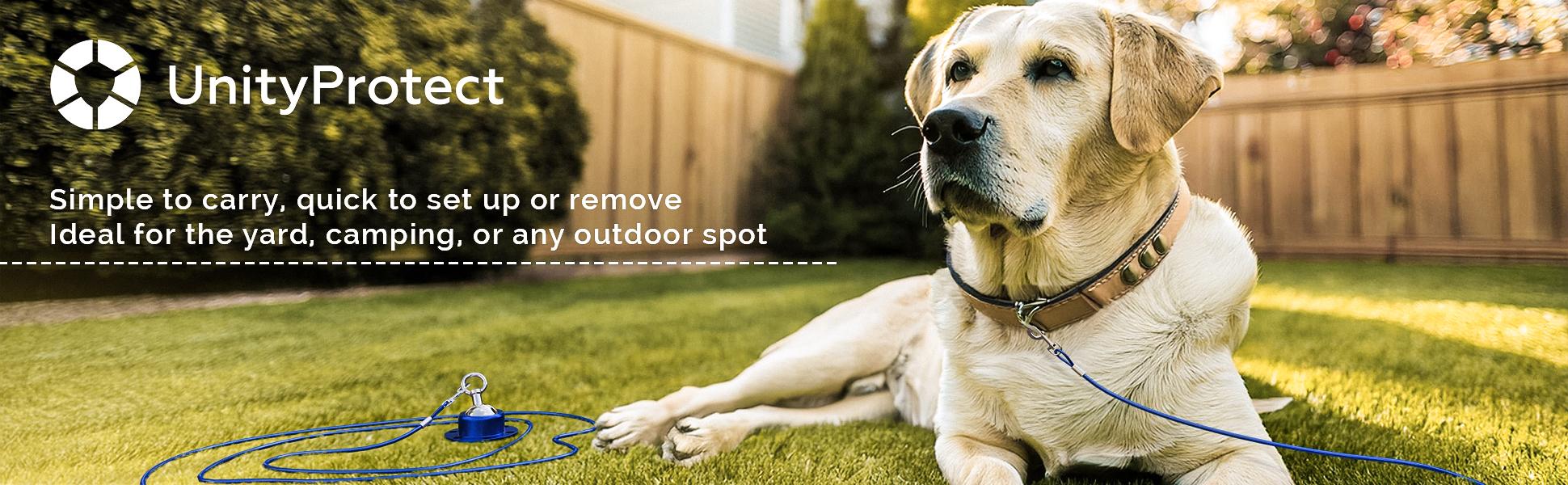 Give your furry friend the freedom to roam safely with the UnityProtect Dog Tie Out Cable and Stake. This 30ft tangle-free leash is perfect for use in your yard or when camping, providing ample space for your dog to move around.